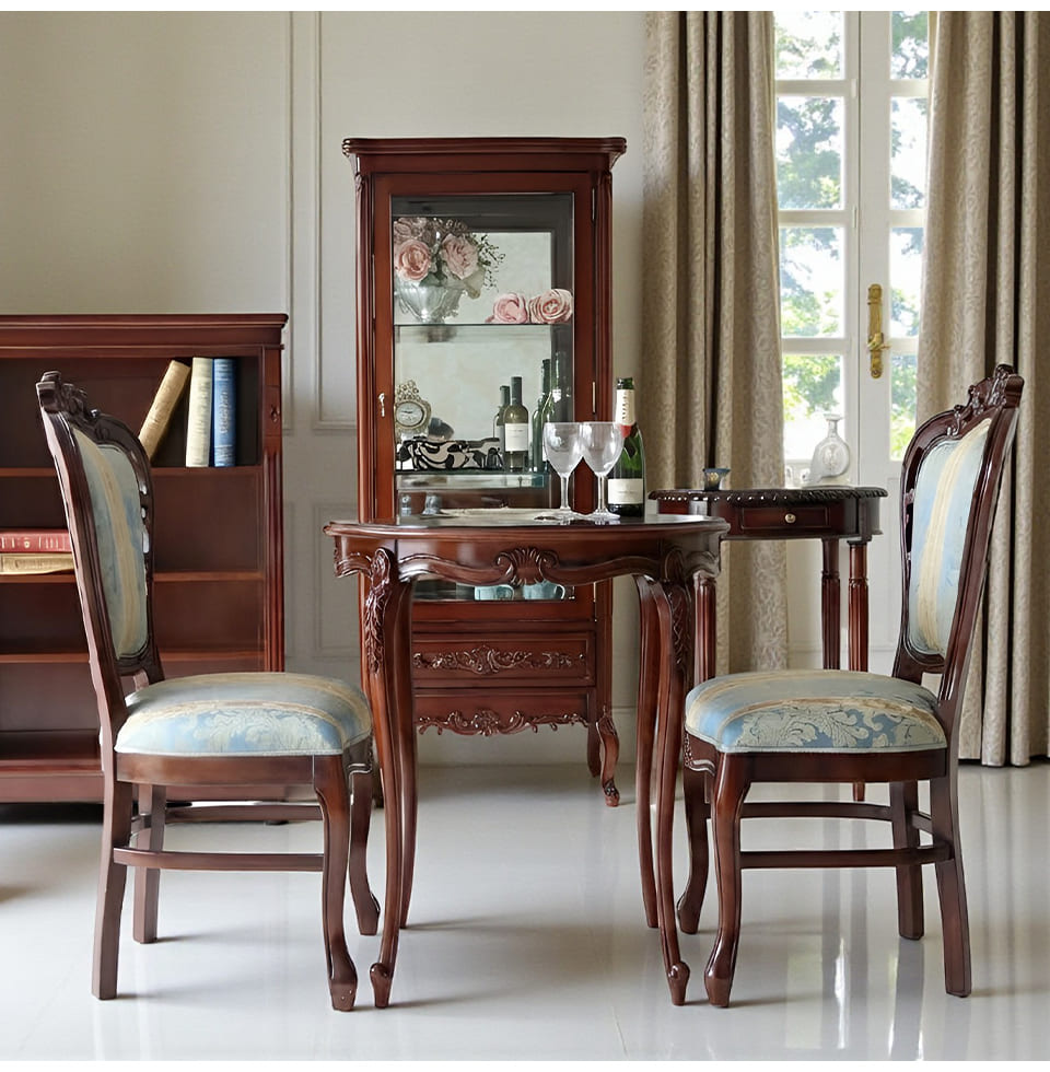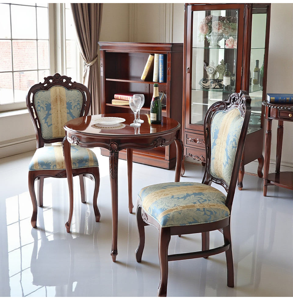 ![]() テーブルとチェアが揃ったとき、 空間はただの「食事の場所」から、 静かに誇れるクラシック空間へと変わります。 限られたスペースでも、妥協しない美しさを。 2人の時間を、きちんと上質に整えるための3Pダイニングセットです。