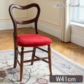 マホガニー家具特有の少し赤みを帯びたブラウンのフレームに、深いベロアレッドの座面を合わせたミニバルーンチェア。 背もたれのやわらかな曲線が印象的なアンティーク調のデザインが特徴。 細身のフレームですっきりとした印象ながら、座面は広めで座り心地も抜群。 コンパクトなダイニングやカフェテーブル、ドレッサー用チェアにもおすすめです。 赤い座面が空間のアクセントになり、クラシックな雰囲気をお手軽に楽しめます。