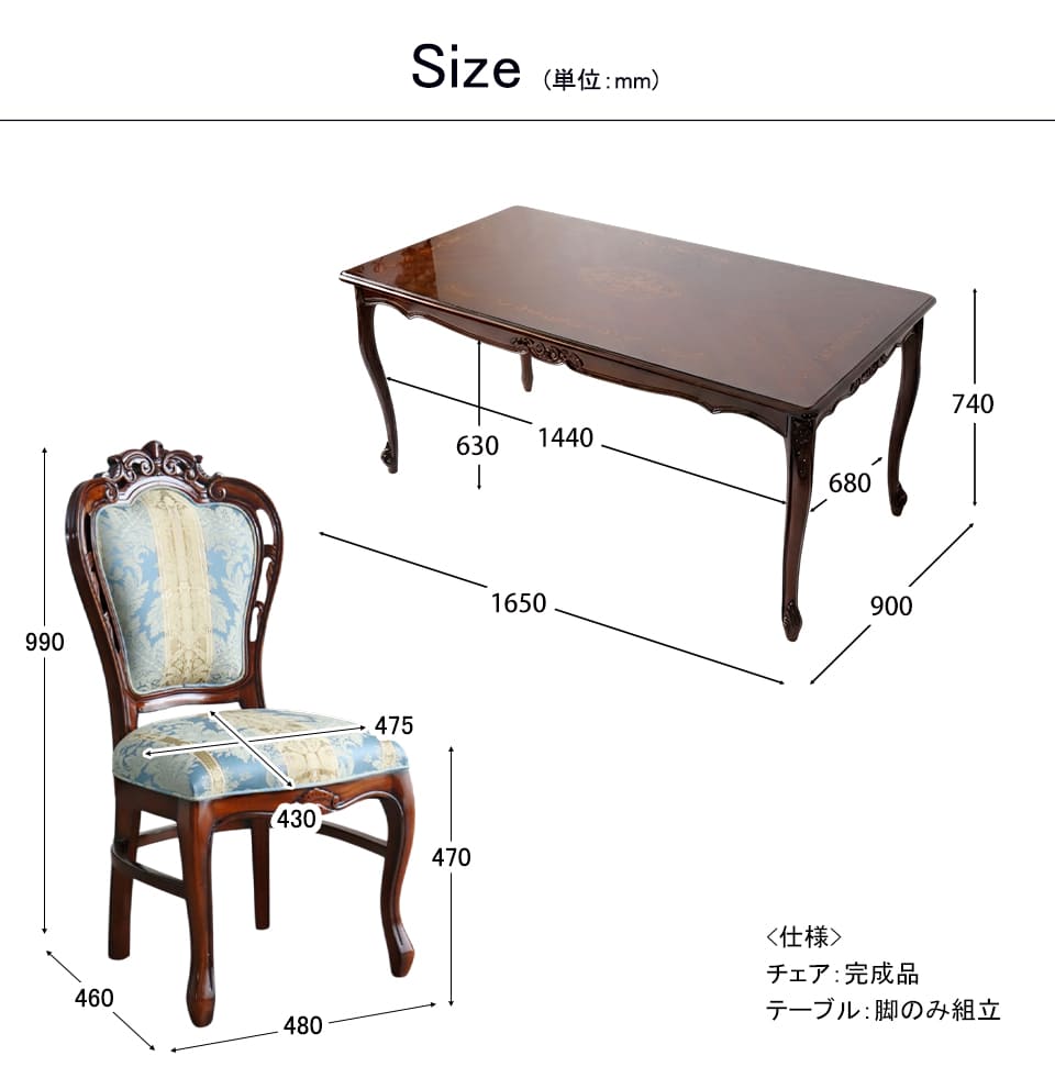 | 仕様 | <チェア> 完成品 <テーブル> ・組立式(脚取り付け) |