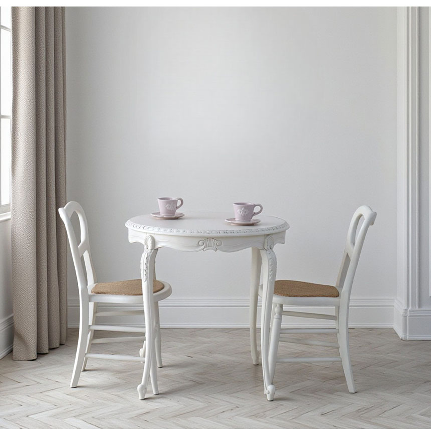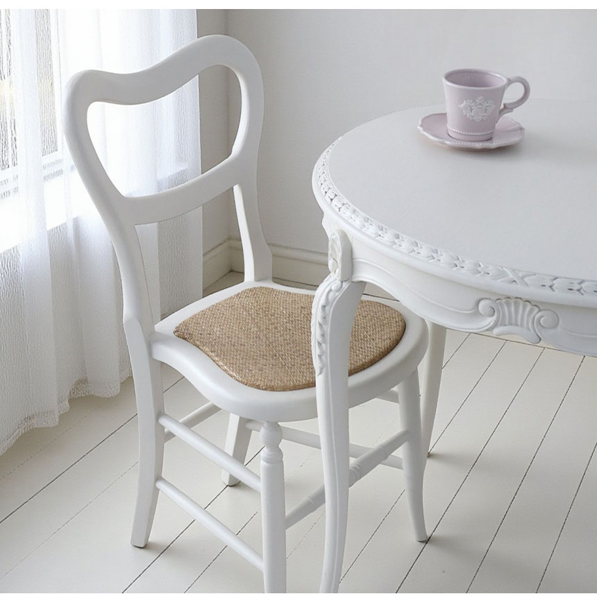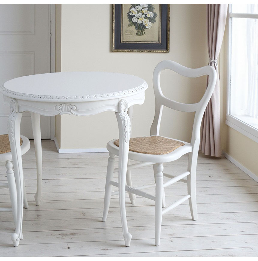 小さな空間に、上質な存在感 カントリーグレースシリーズ ミニバルーンチェア(ホワイト) 幅を取らないスリムなフォルムだから、キッチンやワークスペース、 玄関先にもすっと置けるコンパクトなチェア。 曲線を描く背もたれとナチュラルな座面が、軽やかなのに上質な印象を与えます。 ちょっとしたスペースにも映えるデザインが、日常にさりげない華やぎをもたらします。 ![]() 朝の光が差し込む窓辺で、温かいコーヒーと共にひと息。 軽やかな座り心地と、絵になる佇まいが、毎日の時間を少し特別にしてくれそう。 ![]() 小さくても、絵になる食卓 テーブルとチェアをセットで合わせれば、 コンパクトながら絵になるダイニングセットに。 限られたスペースでも、おしゃれで心地よい時間を叶えます。