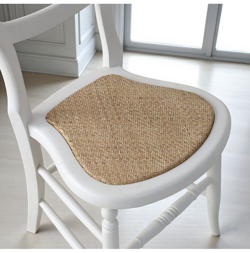 ![]() 見た目も座り心地も、心地よく フレンチ家具らしい藤の座面が、軽やかな印象と上品さを演出。 さらに、座面下部にウレタンを入れることで、 藤チェア特有の沈み込みを防ぎ、耐久性もアップ。 長く使っても破れにくく、美しい佇まいを保てる工夫が詰まっています。 ![]() 小さくても、しっかり支える安心感 コンパクトなサイズながら、長く使ってもぐらつきにくいよう、 脚部にはしっかりとした補強を施しました。 強度を高めつつも、繊細なフォルムや美しいラインを損ねないデザイン性も魅力。