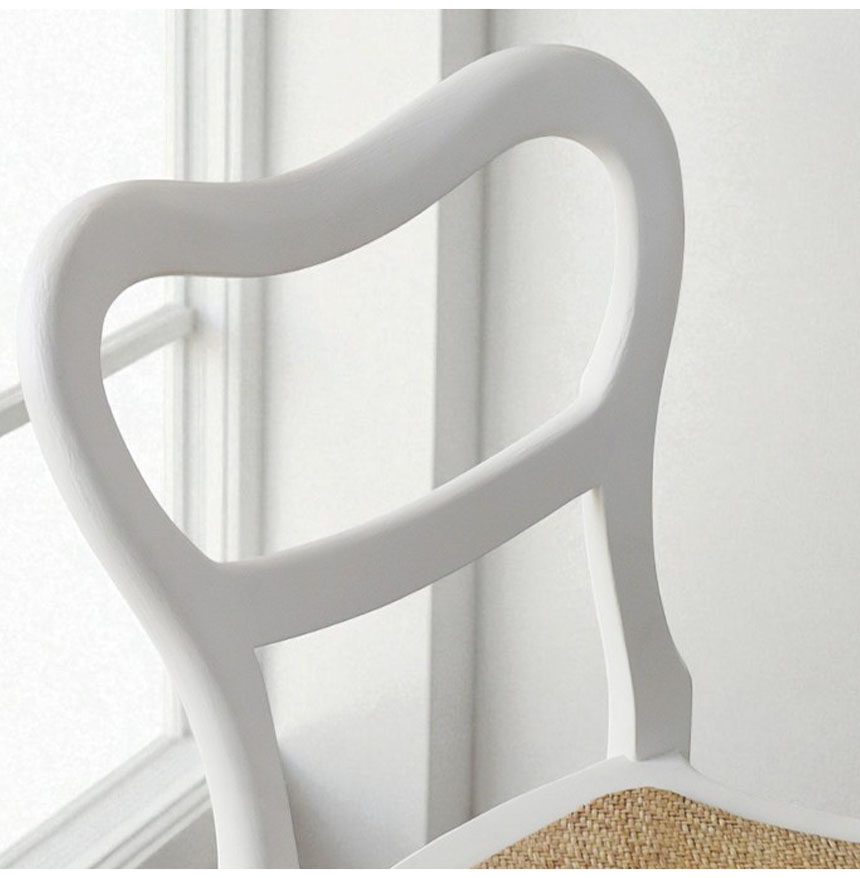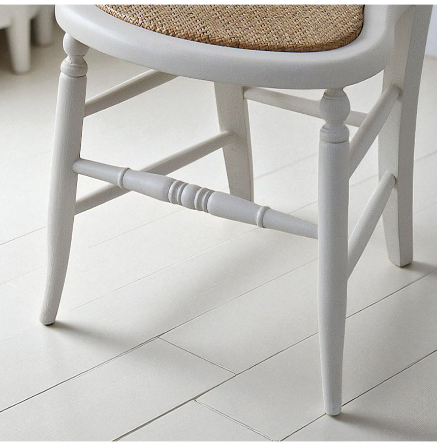 ![]() 見た目も座り心地も、心地よく フレンチ家具らしい藤の座面が、軽やかな印象と上品さを演出。 さらに、座面下部にウレタンを入れることで、 藤チェア特有の沈み込みを防ぎ、耐久性もアップ。 長く使っても破れにくく、美しい佇まいを保てる工夫が詰まっています。 ![]() 小さくても、しっかり支える安心感 コンパクトなサイズながら、長く使ってもぐらつきにくいよう、 脚部にはしっかりとした補強を施しました。 強度を高めつつも、繊細なフォルムや美しいラインを損ねないデザイン性も魅力。