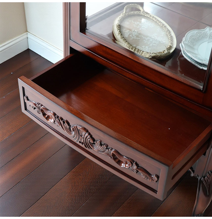 ![]() 下部の華やかな彫刻部分は、実は引き出し収納。 見せたいコレクションは上段へ、日常小物は引き出しへと、 すっきり振り分けができます。 「魅せる」と「しまう」を両立した、機能美あふれる設計です。