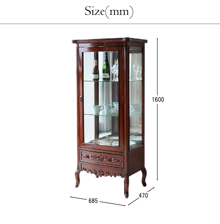 | 製品名: | アンティーク調 片開きショーケース 幅68.5cm 食器棚 飾り棚 おしゃれ 猫脚 木製 ミラー付き ガラス扉 木製 輸入家具 背面ミラー |