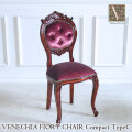 当店で長年の人気を誇るフィオリーチェアです。ドールチェアのようなコンパクトなデザインですが、しっかり座れて実用性も備わっています。ダイニングチェアとして普段使いもできます。ベロアパープルの生地に、手彫りのフラワー型の彫刻がエレガントなデザインです。インテリアのアクセントとしても映える素敵なチェアです。上質で重厚感あるマホガニー材家具「ベネシア」シリーズです。