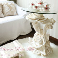 「ローズを斬新なテーブルへアレンジ」薔薇のモチーフを大胆にもテーブルにしたローズテーブル。大きなローズがとっても印象的なサイドテーブルです。花びらの縁にはクリスタルをふんだんに散りばめてとってもゴージャス。サイドテーブルとしてはもちろん、オブジェとして置かれるにも素敵です。サロンのオーナー様や、ロココ調家具が大好きな方へもおすすめです♪