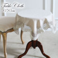 柔らかなベージュ地にクラシカルなフリルがおしゃれで可愛いテーブルクロス。85cmの正方形タイプで、小さめのラウンドテーブルなどにぴったりです。大きめのダイニングテーブルにはトップクロスとしてお使いいただけます。ソファに掛けたり、テレビや家電の目隠しカバーにしたり、アイデア次第で使い方は様々。家具の保護やテーブルマナーとしての役割を果たすテーブルクロスは、インテリア性も抜群。一枚敷くだけでお部屋の雰囲気がガラッと変わり、簡単にイメージチェンジをしてくれます。いつもの食卓をエレガントで華やかな空間に演出してみませんか?