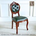 長年の人気を誇る、一目惚れチェア VENECHIA ベネシア フィオリーチェア レザーグリーン TypeA 2005年から売り続けている長年のアイドル。 ベネシアシリーズのフィオリーチェアです。 本革のようなPVCレザー×グリーンで高級感抜群。 サロンやホテルでないとなかなか目にすることのできない猫脚チェアです。 ダイニングチェアにしたり、サイドテーブルと合わせてサロンセットにしたり シーンに合わせてお使いいただけます。 置いてあるだけで絵になる、おしゃれなアイテムです。