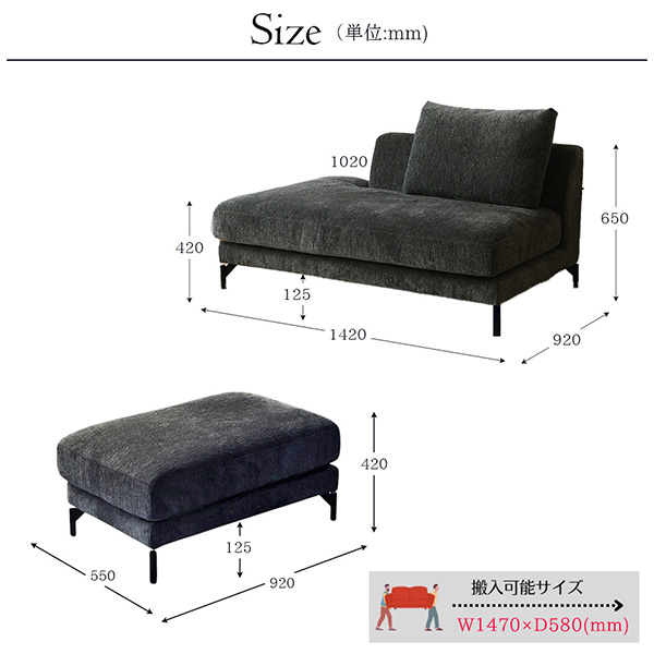 | サイズ | 2ソファ:W1420×D920×H650 SH420(mm) オットマン:W920×D550×H420(mm) (その他詳細サイズは画像に記載しております) |