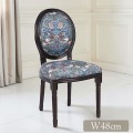 空間の印象を美しく変えてくれる、オーバルデザインのサイドチェア。 背もたれと座面には、イチゴ泥棒柄のジャガード織を贅沢に使用し、奥行きのある豊かな表情を演出しました。 天然木フレームのほどよいアンティーク感が全体に落ち着いた気品を添え、置くだけで空間を印象的に彩ります。 幅約48cmの取り入れやすいサイズ感で、ご自宅のリビングや寝室にはもちろん、オフィスや店舗空間の演出にもおすすめ。 長時間でも疲れにくい快適なクッション性を備え、見た目の美しさだけでなく、心地よい座り心地も兼ね備えた一脚です。