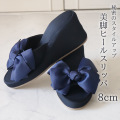 8cmヒールでどんな時でもスタイルアップ 美脚プリンセスルームシューズ リボン ネイビー ヒール8cm ヒールスリッパ すらりと美脚を演出するこだわりの8cmヒール。 「ヒールを履いて学校に行ったらスリッパに履き替えた途端におしゃれ度が…。」 「靴を脱いだら急に背が低くなって気になる…。」 「家でもおしゃれでいたい。」 なんて思われていた方にピッタリの女性の希望を叶えたルームシューズです。 入学式や卒業式、お受験などの学校行事はもちろん サロン様やエステティシャンの方にも大変人気です。