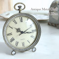 懐中時計風のレトロでアンティークなデザインの置き時計。ラウンドサイズです。小ぶりのミニサイズなので置き場所を選びません。細部にまでこだわった装飾がヨーロピアンなインテリアを演出します。大切な人へのギフトとしてもおすすめです。