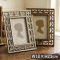 繊細なリーフ模様が透かし彫りのように連なる、アンティーク調のフォトフレーム。重厚感のあるゴールドと落ち着いたシルバーの2色展開で、インテリアに合わせてお選びいただけます。お気に入りの写真やポストカードを飾るだけで、空間がぐっとエレガントな雰囲気に。玄関やリビング、寝室はもちろん、サロンやショップディスプレイにも映える存在感ある一品です。