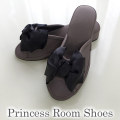 大きめのリボンがアクセント 美脚プリンセスルームシューズ(スリッパ) リボン グレージュ×ブラック 深みのあるグレージュ×ブラックのエレガントなルームシューズ。 大きめのリボンがアクセントのおしゃれなデザインです。 お部屋の中でもおしゃれを楽しみたい方にピッタリ。