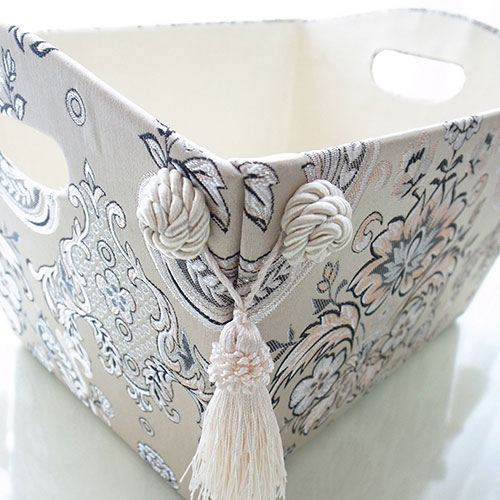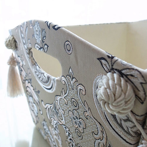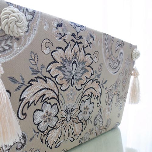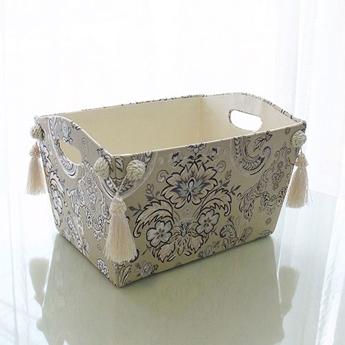 ジェニファーテイラーから久しぶりにクラシックな柄の新作が登場しました。シャンパンゴールドの上品な光沢と刺繍が織りなすHelenaシリーズ。今までとは違った高級感のあるクラシックシリーズです。 毎日の生活におしゃれエッセンス投入! ◆おもちゃ入れや、マガジンラック、小物の整理などに大変便利!これだけオシャレだと細々していた物たちも美しいインテリア性を持った空間に置いておけますよね♪取っ手が付いているので持ち運びにも便利です♪あるようでなかった使い勝手の良いフリーボックス。お勧めです!◆同シリーズで揃えれば、コーディネートを統一できます。◆サイズ:W365×D270×H230(mm)◆材質:[芯材]厚紙 [表面]布