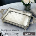 お部屋の雰囲気を変えたい時のエッセンス ヨーロピアンインテリア 長方形トレイ 幅22cm 「お部屋の雰囲気を変えたい。」「大掛かりな改装は避けたい。」 そんな悩みを持つ方に、簡単に豪華さをプラスできるアイテム。 こちらのアンティーク調のトレーは、生活空間に高級感を加え、 普段の生活を特別なものに変えてくれそう。 小さな変化で、大きな豊かさを手に入れられる。 そんな素敵なトレーです。 ![]() テーブルの上に置くだけで、部屋の印象は一変してくれます。 上品な輝きでゲストを迎え、日々の生活に小さな幸せをもたらしてみては。 高級ホテルのような空間で、お茶を楽しんだり、 重要なアイテムを華やかに収納したり。 この一品で、日常に静かな満足と潤いを。