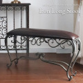デザイン性のあるアイアン使いがインテリア性を高めてくれる アンティークウッドシリーズ レザー調 アンティークロングスツール アイアンをクルンと曲げた可愛らしい猫脚が優雅な、フレンチアンティーク風のロングスツール。 レザーのようなPVCを使い、本格的なアンティークスタイルで高級感たっぷりに仕上げてあります。 スリムなデザインですが、ふっくらした座面で座り心地も抜群。