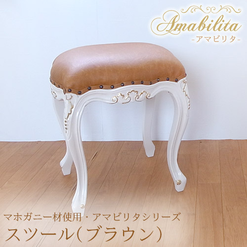 商品説明: 「Amabilita-アマビリタ-」とは、イタリア語で「愛らしい・やさしさ」という意味。 アイボリーにゴールドカラーの彫刻が引き立つ、アンティーク調のシリーズ家具です。 年数が経つごとに美しい艶を増す高級家具材マホガニーを、猫脚の上品なテイストに仕上げました。 こちらはブラウンの座面が上品なスツール。場所を選ばないコンパクトなサイズ感。 シリーズで揃えれば、お部屋のコーディネートを統一できます。 憧れの白家具であなただけの愛らしいお部屋にしてみては。※【必ずお読みください】こちらの商品は主に輸入家具となっており、海外での生産となります。また、ヨーロッパ・ドバイ・アメリカなどといった海外向けに作られている商品となります。ほとんどが手作り・手塗装で制作されております。一点一点が手作業のため、塗装・仕上がりには個体差がございます。弊社での検品を行い、修正できる部分は修正してからの発送をしておりますが、アンティーク塗装仕上げ(離れると見えない程度)となっている個所がございますこと、予めご理解・ご了承の上、お買い求めください。