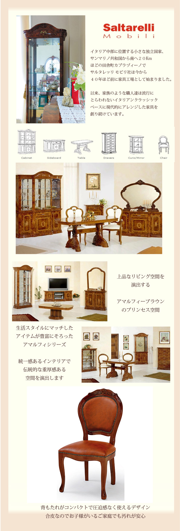 製品名: イタリア製 アマルフィ チェアブラウン (合皮) 椅子 イス おしゃれ 猫脚 茶 ブラウン アンティーク 木製 サルタレッリ