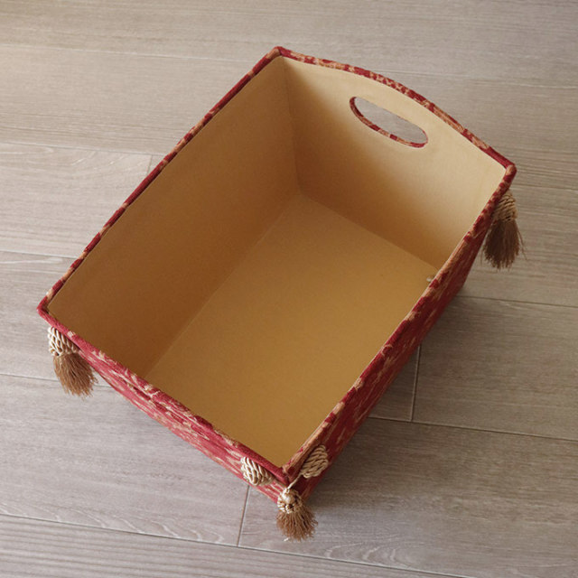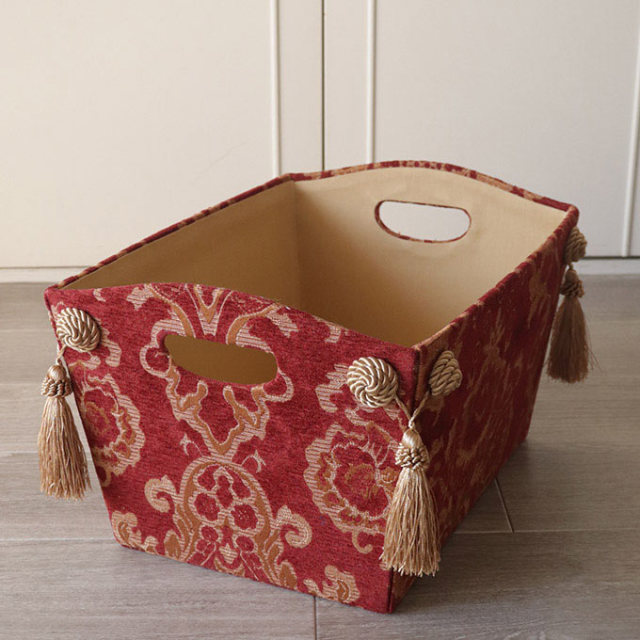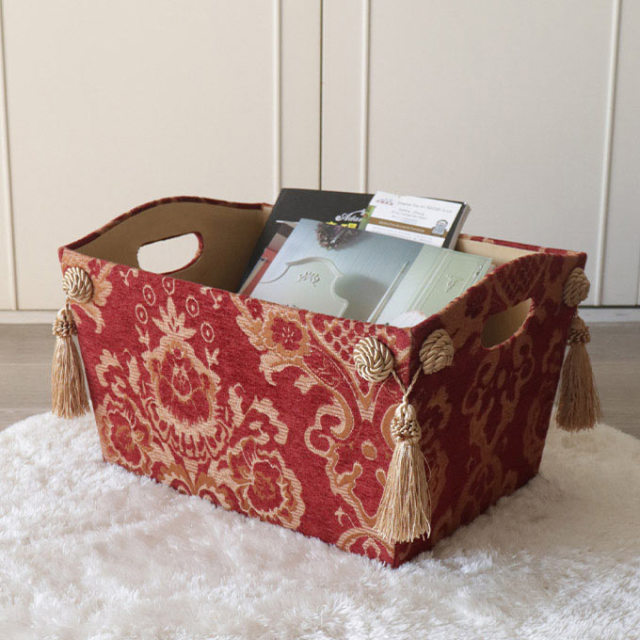 商品説明: 大人気のファブリック雑貨ジェニファーテイラー「Bacara」シリーズのマガジンホルダー。シックなレッドにダマスク模様が、おしゃれで洗練された上質な空間を演出します。上品なカラーで、インテリアにも合わせやすくお薦めです。毎日の生活におしゃれエッセンス投入!◆おもちゃ箱にしたり、スリッパ入れなど色々とお使いいただけます。 ◆コーナーに付いたタッセルもおしゃれ。 ◆同シリーズで揃えれば、コーディネートを統一できます。 ◆サイズ:W390×D300×H220(mm)