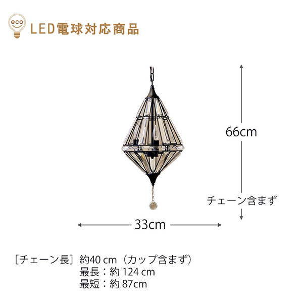 | サイズ | 約 Φ.33×H.66 cm(チェーン含まず) [チェーン長]約 40cm 最長:約124cm 最短:約87cm |