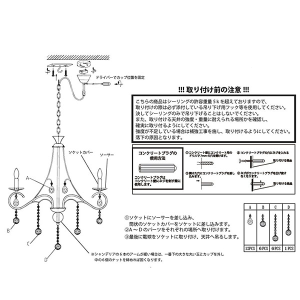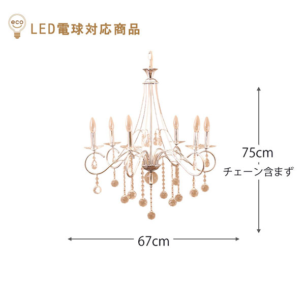 | 規格・付属 | 付属:E12 40W(水雷型) 電球6個付き(最大40Wまで対応) 組み立て用六角レンチ |