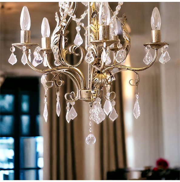 暗くなって灯りを点ける時間が楽しみになるシャンデリア。 優しく灯るシャンデリアの灯りは、一日の疲れを癒してくれます。