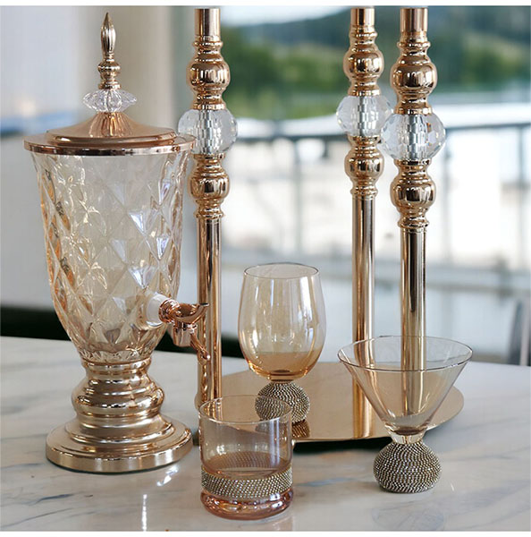 テーブルを彩る上級インテリア ジュエル カクテルグラス(ゴールド) (ミニコンポート) 輝く持ち手にうっとり。 高級感漂うシャンパンゴールドのおしゃれなカクテルグラス。 重厚な雰囲気が魅力。 コンポートやキャンドルホルダー、フラワーベースとしても素敵に活躍。 洗練された使い方で、贅沢なひとときを演出してみませんか?