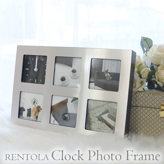 商品説明: 「くつろぎの空間」をコンセプトに、インテリアのアクセントとして心地良い空間を演出してくれるリビングフォトフレームを集めた「RENTOLA」シリーズ。写真を5枚ディスプレイできるクロックフレームです。お気に入りの写真を入れて、自分だけのオリジナル時計を作ることができます。入れる写真によってさまざまな表情を見せてくれます。シルバーとブラックの組み合わせがスタイリッシュです。卒業記念や結婚祝いなどのプレゼントにもおすすめです。