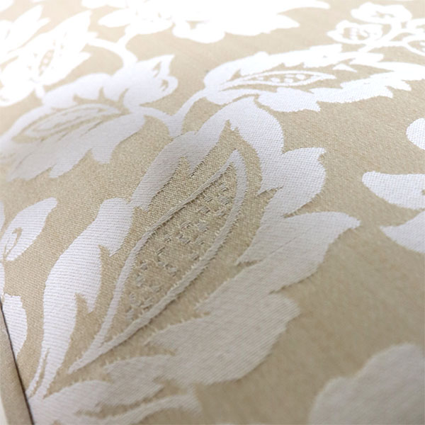 フレームは強固で頑丈なユーカリの木を使用。 フレーム作りから耐久性を上げられるように工夫されています。 ![]() エレガントな光沢 どんなテイストにもマッチする上品さと明るさを備えたアイボリーゴールドの生地。 立体的に織りなす刺繍は軽やかで派手過ぎない。 そんなさりげないヨーロピアンな柄がリバプールの魅力。 ![]() 脚は忠実な英国デザイン ソファの脚は天然の無垢材を使用。 英国のチェスターフィールドソファを忠実に再現しています。 丸みを帯びたデザインでスタイリッシュさもありますね。 ※脚の高さは約10cmとなります。