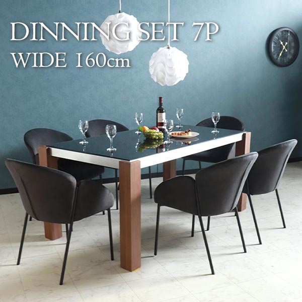 <テーブル> 天板:強化ガラス(飛散防止フィルム付) 脚:天然突板(ウォールナット材) <チェア> スチール、ファブリック |