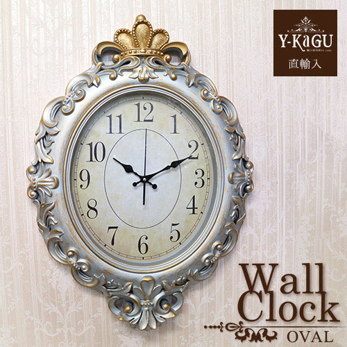 【Y-KAGU直輸入】ウォールクロック(壁時計) シルバー(オーバル)
