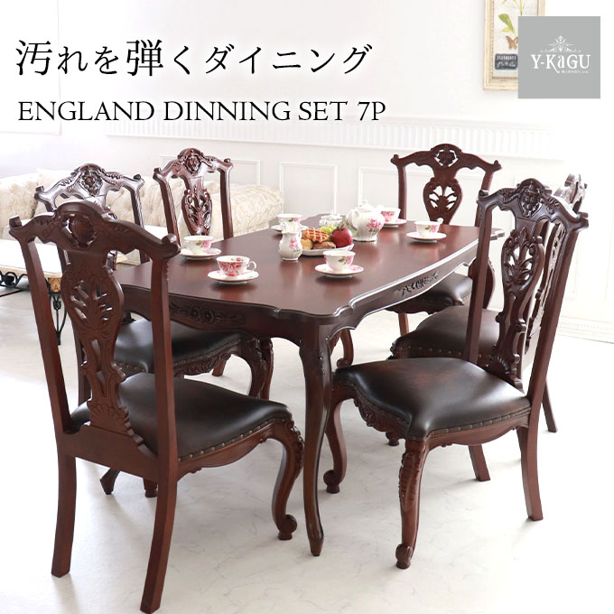 テーブル:マホガニー材、ウレタン塗装 チェア:マホガニー材、PVCレザー |