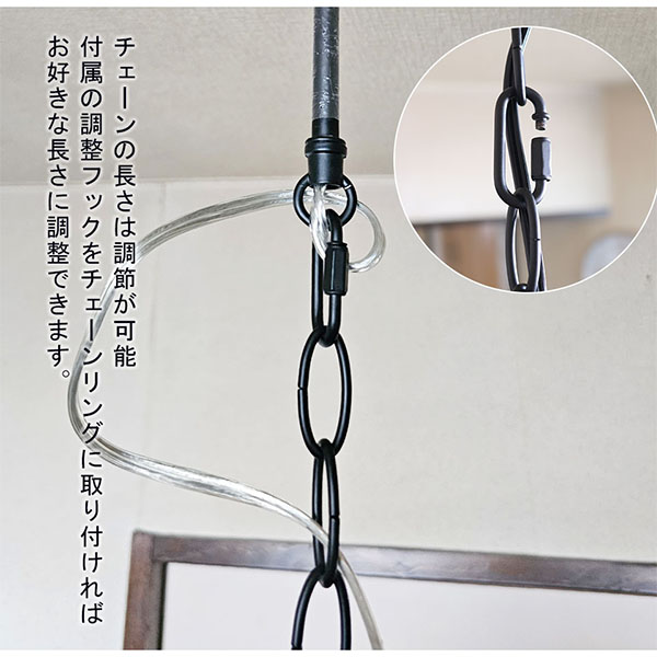 | サイズ | <本体> 全長:約105cm 本体:Φ49×H34.5cm <シーリングカップ> Φ11×H19cm チェーン長:約50cm(3コマ毎取り外し可能) |