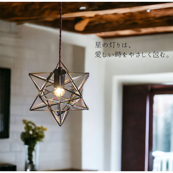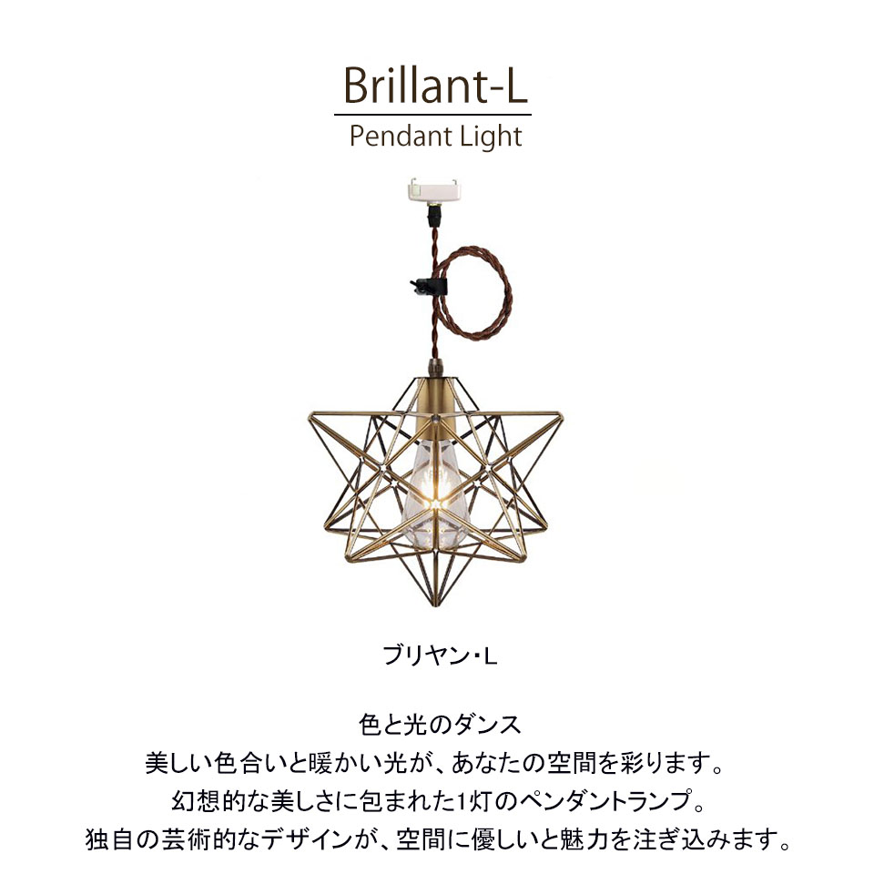 エキゾチックで幻想的な光と影を放つ ・・・ 【LED対応】ペンダントランプ Brillant-Lブリヤン・L(ゴールド) 立体的な星形をワイヤーで描いたペンダントライト。 角度によって見え方が異なる12面体のワイヤーシェード。 壁に写る陰影も星のかたちになり、幻想的な空間に演出します。 ダクトレールなどにフレームを二つ並べたり、大きさ違いで飾ってみるのも素敵です。