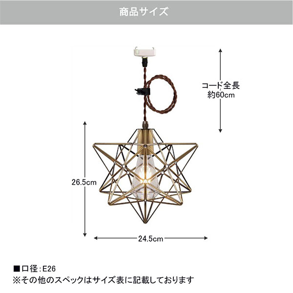 | サイズ | ・シェードサイズ:W24.5×D24.5×H26.5cm ・灯具全長:約110cm ・コード長:約60cm |