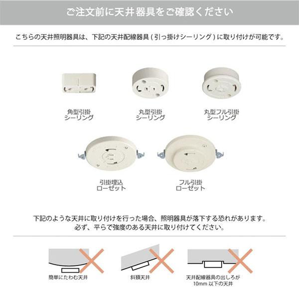 | 仕様 | 角型引っ掛けシーリング ※ダクトレールで使用する際は別途ダクトレール専用のアダプターが必要となります。 |